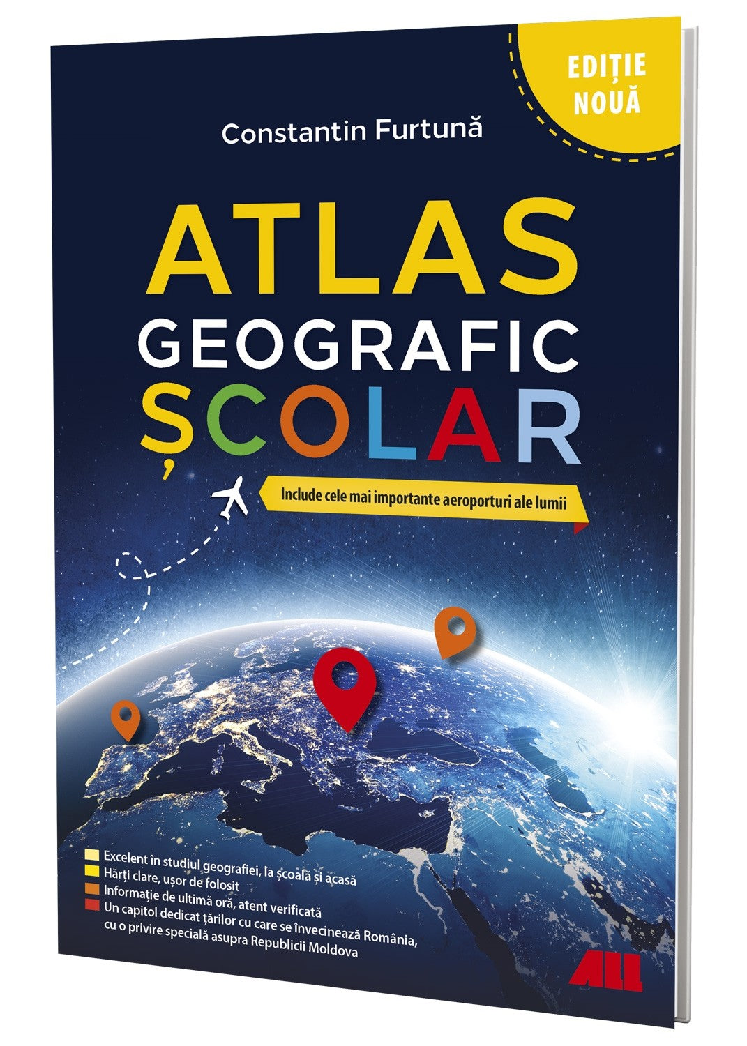 Un instrument esențial pentru elevi, acest atlas actualizat conține hărți clare și bine structurate, noțiuni geografice de bază și informații utile pentru studiul la școală și acasă.